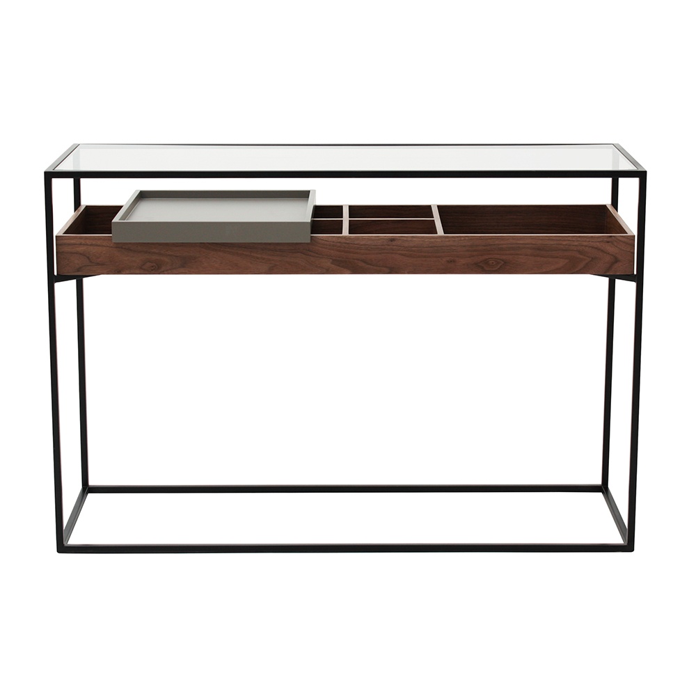 DT-060 胡桃木+黑亞光金工件+透明鋼化玻璃