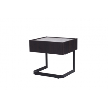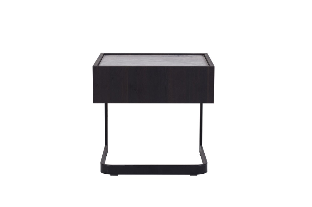 底板+陶瓷下墊板+背板+右側(cè)板+左側(cè)板+抽面板煙熏木紋三聚氰胺板(PB)+抽盒淺灰布紋三聚氰胺板+意大利米灰陶瓷面板+黑啞光金工腳