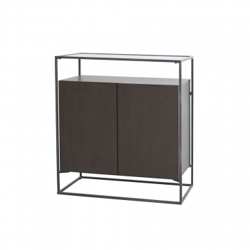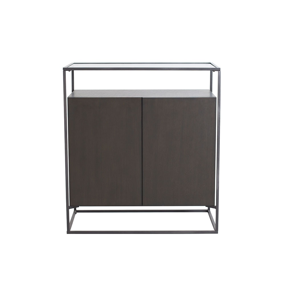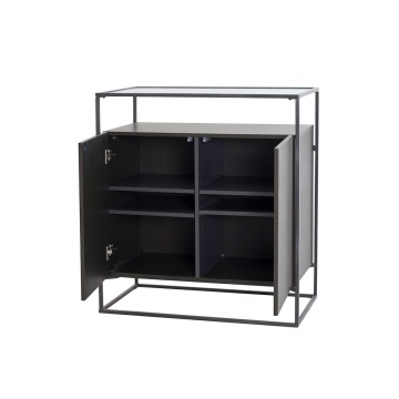 CB-127-橡木石灰色主體+灰色亞光三聚氰胺板中立板-活動層板+透明鋼化玻璃面板+金屬深灰色金工件